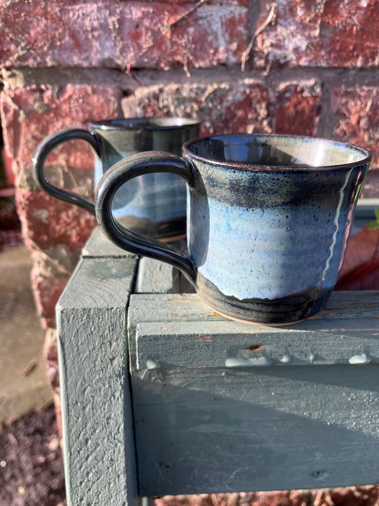 Moody mugs in a dark greeny grey with a light blue highlight. 220ml each. Sold separately.