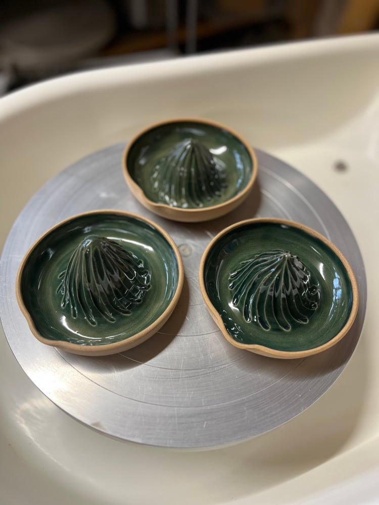 Functional and attractive, lemon/lime squeezers in many colours. I always have plenty made but not always glazed, so message for your colour requests if you don’t see one you like here on Shedpots. The deep ridged design allows for full juice extraction!