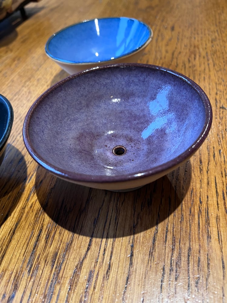 SALE PRICE Small conical soap dishes with raised foot ring including drainage cutaway. About 10cm across, perfect for smaller sink side.