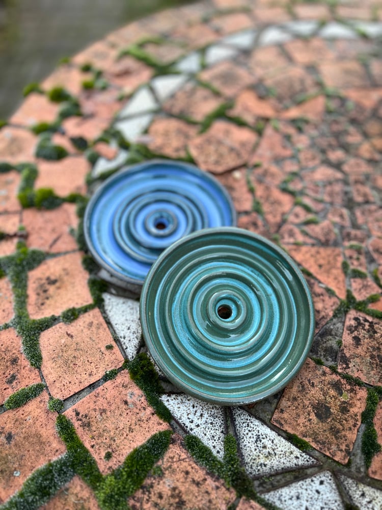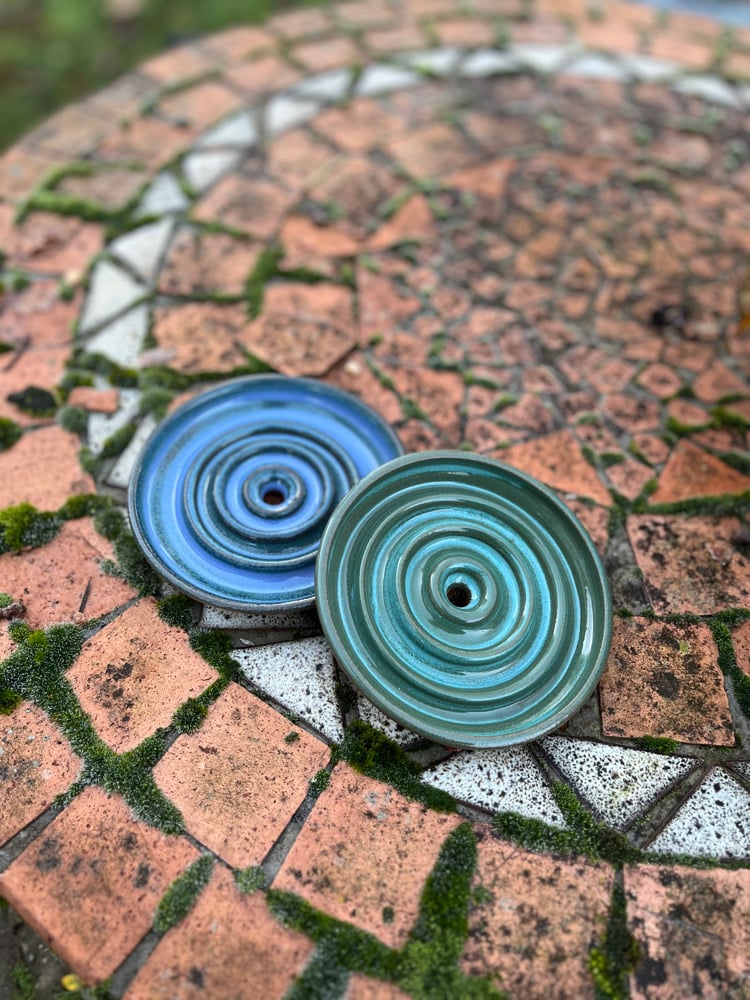 Measuring 12cm across these ridged soap dishes will keep your soap and scourer dry making them last longer. Each has a drainage groove underneath from the central hole to help take away moisture. Glazed in stunning blue and teal, these would make a lovely addition to sinkside in your bathroom or kitchen.