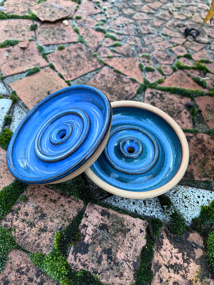 Measuring 9.5cm across these ridged soap dishes will keep your soap dry making them last longer. Each has a drainage groove underneath from the central hole to help take away moisture. Glazed in stunning blues, these would make a lovely addition to sinkside in your bathroom or kitchen.